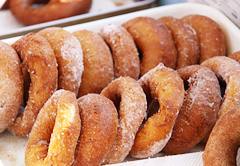 また、ABSのドーナツは、品質の高さと味にこだわりがあります。夏期休業期から、組織づくり、試食会の実施、プロジェクトチームT-shirtsの販売を行うとともに、より高い利益率を求め、社会人学生ネットワークや営業力を駆使し、原材料や販売用資材、飲料品を寄附いただける企業を募る活動も行いました。配合調整を重ね商品開発したシュガー味、そしてシナモン味のドーナツは、私たちの自信作です。