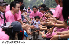 | 条件: | 全員揃いのチャリティランTシャツを着て走る。当日は、会場の明治神宮外苑をチャリティTシャツのカラー(ピンク)一色に染める。 |