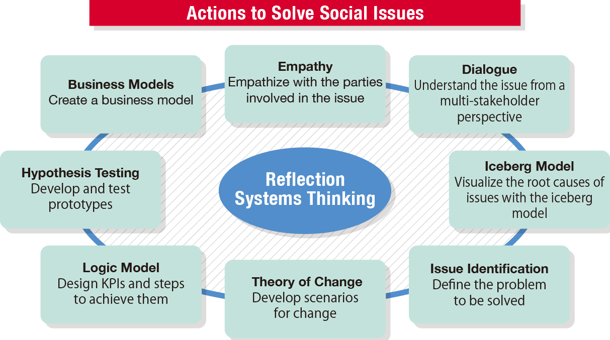 While the line between social and business issues is becoming thinner with advances in SDGs, ESG, impact investing, etc., social business has challenges that are different from those of conventional business. In addressing a social issue, it is essential to be in the shoes of the parties involved, rethink the issue from a multi-stakeholder perspective, and look at its whole picture through systems thinking.